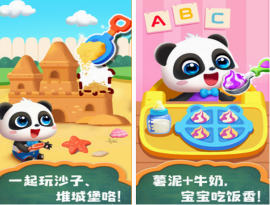 这款由宝宝巴士所推出的照顾小宝宝游戏,是以一只可爱的小熊猫宝宝为主要角色的,不仅引用了儿童非常喜欢的颜色进行设计,玩法也是比较丰富的。在照顾里面小宝宝的时候,既可通过穿衣服,打扮成自己喜欢的样子,同时还可利用所具备的各种食材,满足宝宝吃食物的需求。支持一起玩沙子堆成城堡,利用这种模拟游戏,帮助你在现实生活中,也能成为带娃小能手。