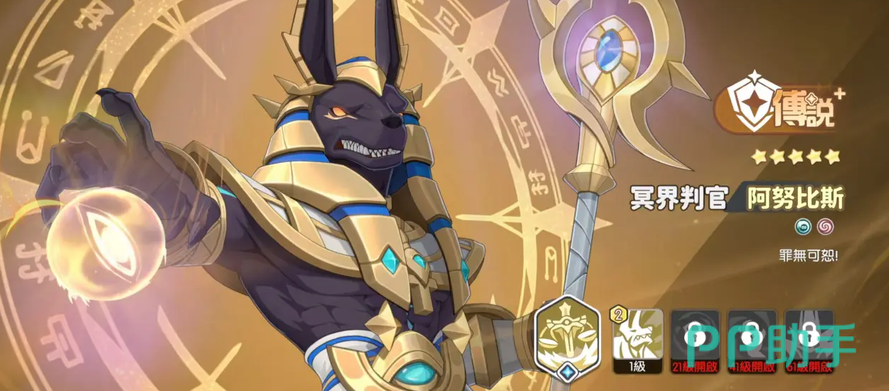 阿努比斯自身的身板十分不错,能给我方血量最低的队友提供护盾,并且为所有的后排提供减伤,升到满星后还可以加一次复活机会,也就是有两管血可以用,但是比较需要彼岸队的“遗言”层数,在能确保其生存和输出能力,在彼岸队非常强势,其他阵容不太推荐放入。