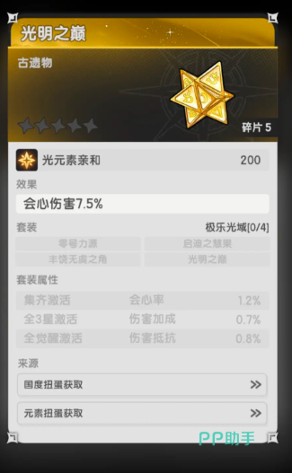 当套装的遗物在到一定星数要求后, 还能得到不同的套装属性,若是稀有遗物5星后,大家消耗60自身碎片加60其他稀有溢出碎片,可以升到觉醒星级,史诗遗物在5星后可消耗90碎片升到觉醒。