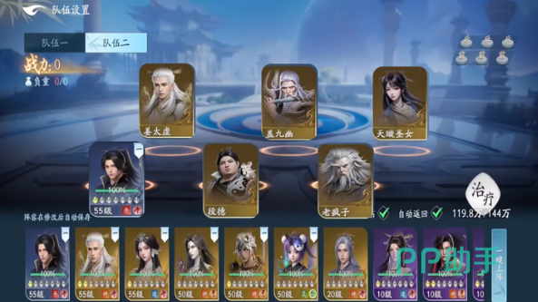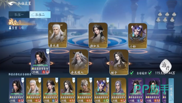 第二套是第一套的替补方案,如果新手前期手里只有主角和姜太虚的话,可以用其他角色来代替,比方说上阵颜如玉、小松、赤龙仙人和姬子,这些角色的获取难度要更一点;