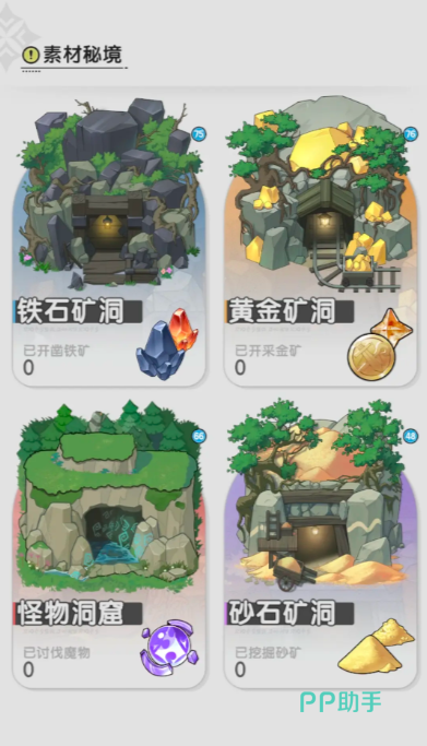 每次进入需要消耗对应的矿铲、拳套、矿镐和矿锤,建议大家每种可以各买两次次数,因为前期可以储存,然后是日常副本,这个每个区域都会有对应的,不同副本会产出不同等级的装备。