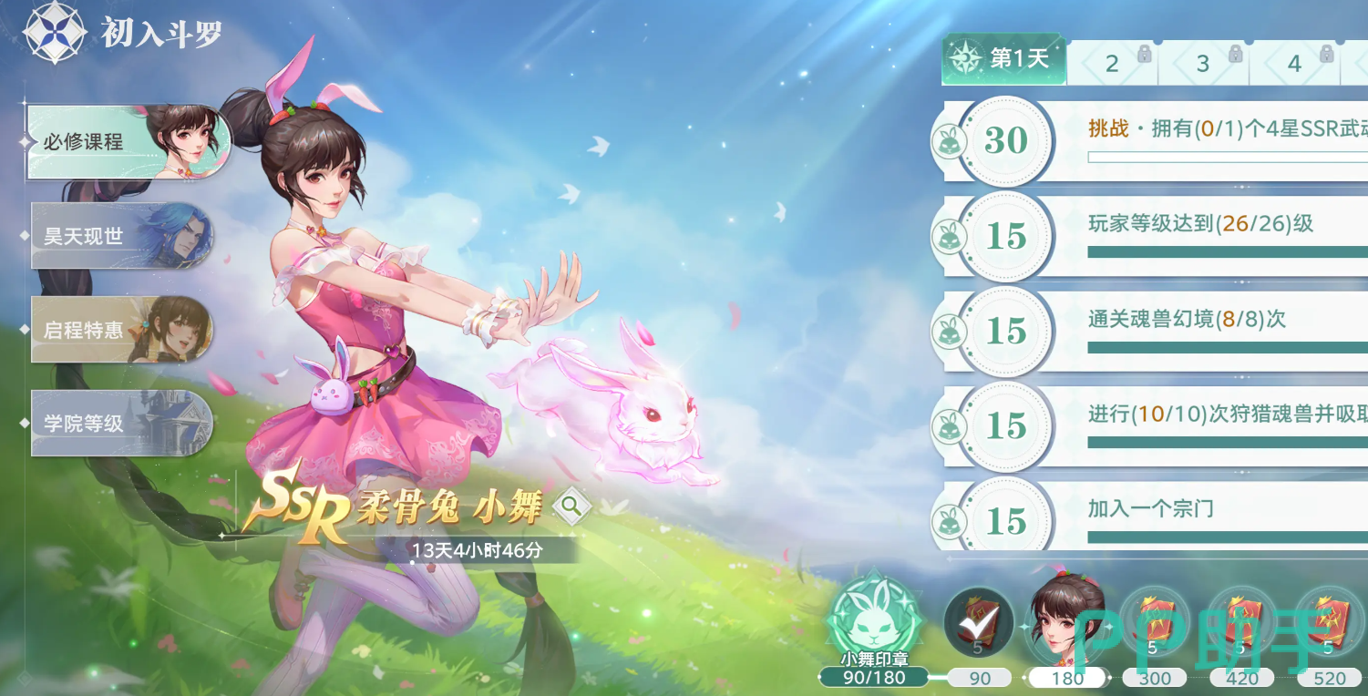 游戏中不止设置了经典角色小舞和唐三,还有朱竹清、戴沐白等等超强的魂师等待玩家解锁,值得一提的是,当玩家首次进入到游戏之后,完成游戏当中的所有必修课程,还能够通过积分,直接兑换SSR级别的柔骨兔小舞。