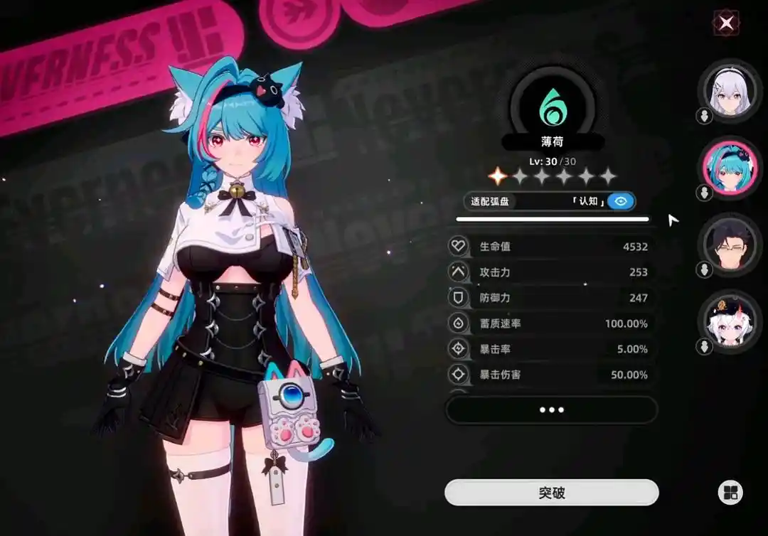 最后就是异环的战斗系统,目前可以支持四人小队一起作战,一般队伍配置方面基本上就是一到两个主c,一个副c,加一个辅助,这样能最大程度发挥环合系统,让怪物进行破盾以及各种负面状态,而每个角色都拥有对应的大招,而且强化小队之间的连接,还能组成特殊的体系。