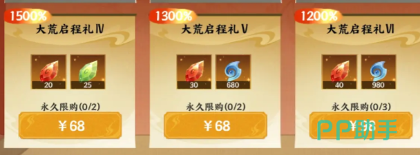 大荒启程礼曾经也会拥有比较亲民的价格。只需要6元、12元,还有30元。这不仅仅是数字,同样也是在冒险路上的一道微光。会帮助无数的玩家在土地上直接跨出第1步。在这里还会有多个不一样的等级可以选择,例如有68的iv,还有98的vi。