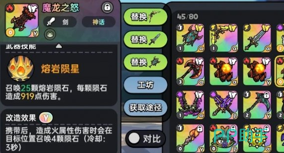最后,魔龙之怒是专为火属性输出量身打造的武器。这件武器的技能可以召唤25颗熔岩陨石,每一颗都会对敌人造成919点火焰伤害。最为引人注目的是经过改造后的γ效果,击中敌人时会在其位置引发4颗额外的陨石雨,使其爆发伤害更为惊人。魔龙之怒的获取途径为击败魔龙及其副本,因此需要一定的挑战难度,但对于火属性伤害追求者来说,是一把不可或缺的武器。