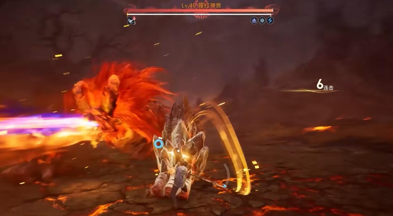 参照开放世界BOSS常见模板,红霸霸可能存在血量阈值触发的阶段变化。例如70%血量时召唤小怪协同作战,或30%血量进入狂暴状态提升攻速。但是视频并没有详细的机制曝光。但能确定部分场景或设计环境互动机制,如激活场景弩炮压制BOSS动作,或破坏岩壁制造落石伤害等等。