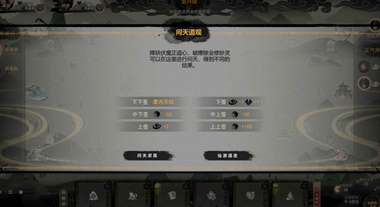 《道遥仙游》是一款以修仙为主要题材的游戏,于游戏之中,玩家需要根据洪荒之中的灵感提示,来决定自己每一年的修炼目标。