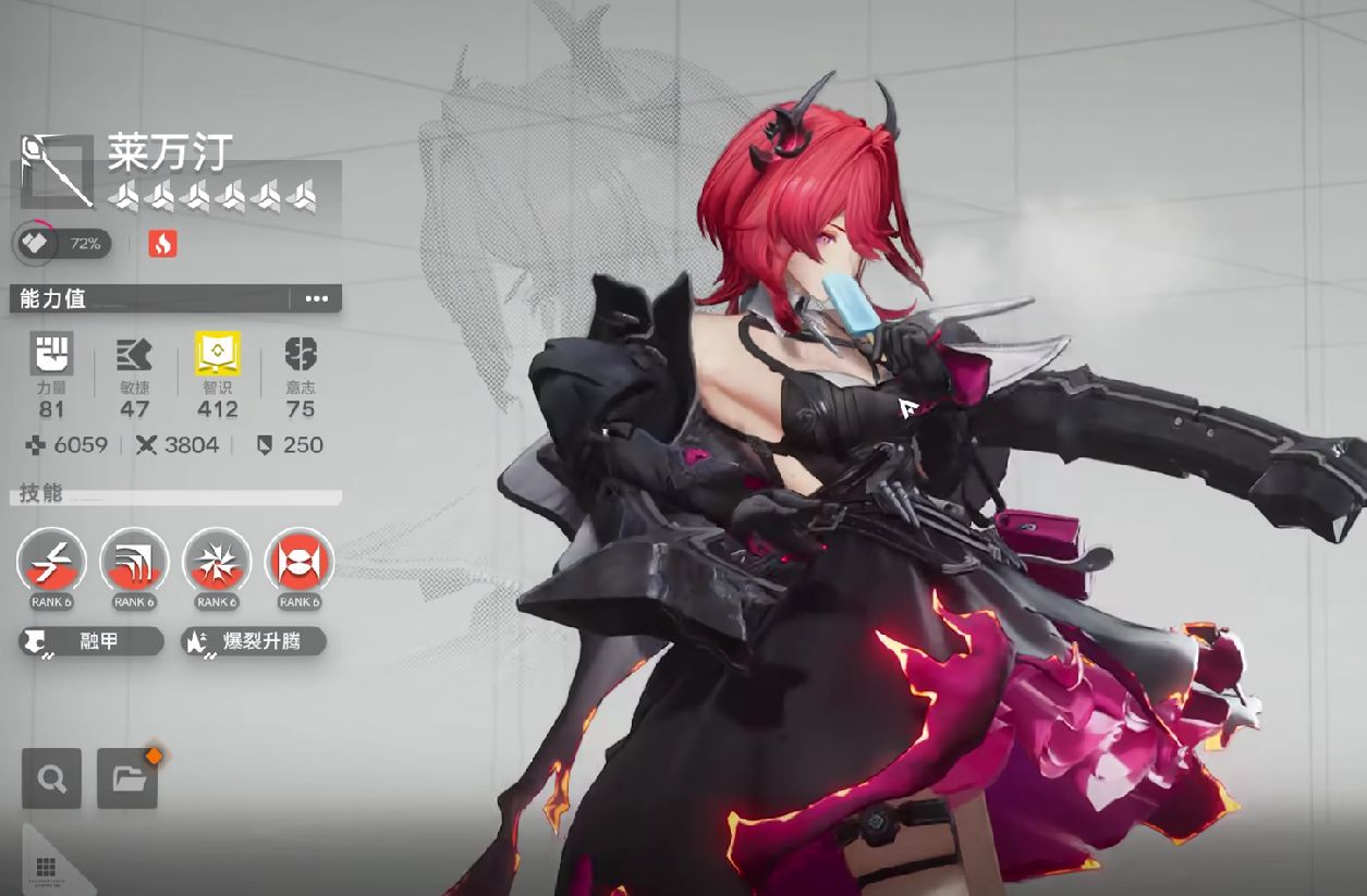 莱万汀在战斗的时候,可以提到控制跟增伤的作用,因为他能够有效地打断敌人的节奏感,让整个团队的压力感大幅度的下降。另外他的抗性可以有效地降低效果,并且让整个队伍的火焰伤害达到最高。其实莱万汀的终结技能再一次提高额外的伤害跟范围内的攻击,如果碰到的敌人是高威胁的敌人,那么正中下怀。