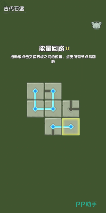 在古代石堡关卡之中,能量回路解谜任务,需要玩家将多个不同类型的小方块,进行合理的旋转,从而保证能量能够进行回流,这样才能够打开下一个关卡的密道。