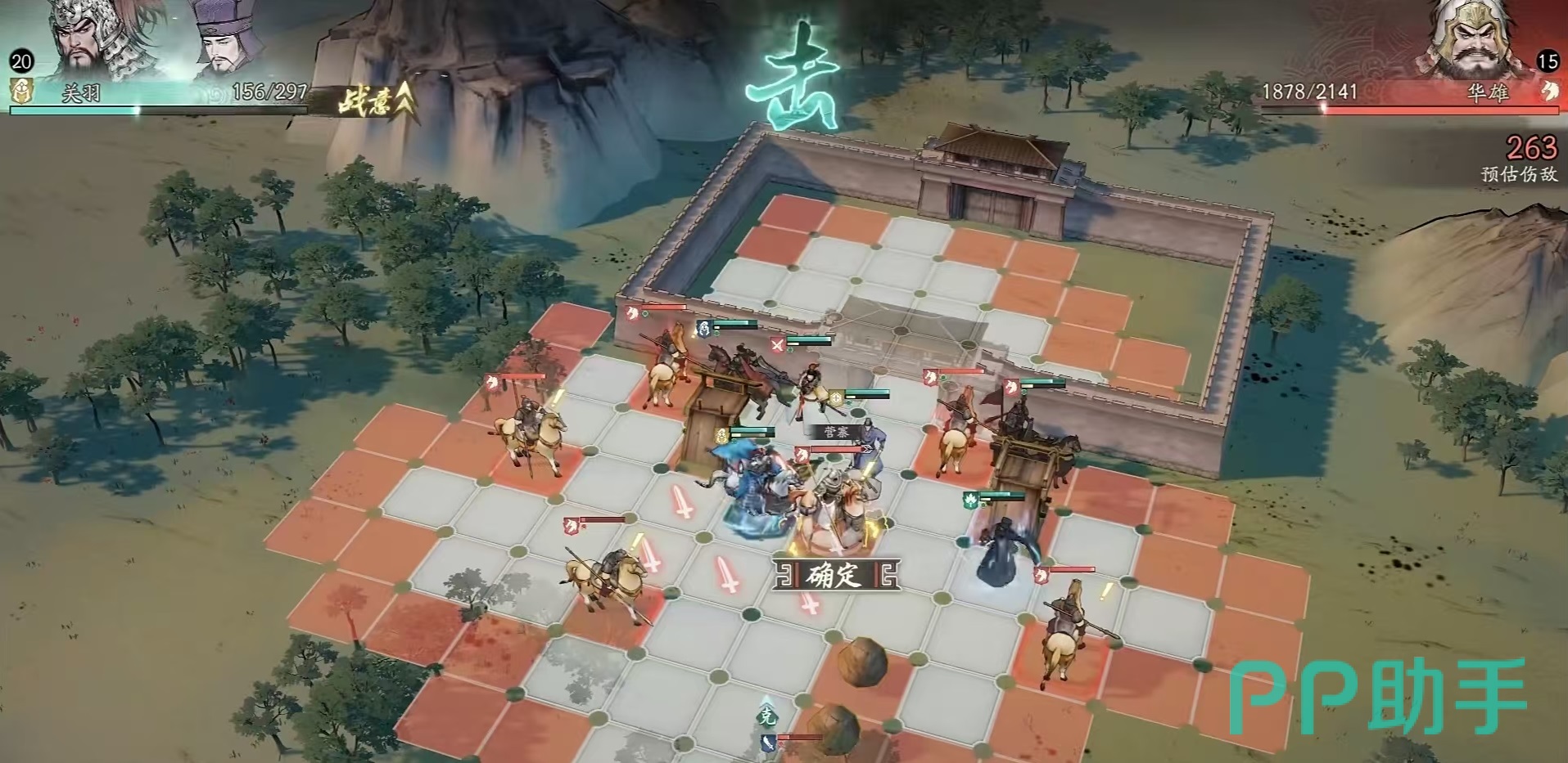 对于玩家来说,这款游戏中最重要的机制有三个,分别是合击、反击和追击。先来看一下合击,合击的条件是敌人处于我方两个武将三点一线的包夹之下,此时就会形成合击。整个战场就是一个四边形的棋盘,横竖线和对角线,都可以形成包夹。需要注意的是,当敌人被包夹的同时,必须处于我方两个主将攻击范围之内才可以触发,如果不在其中一名主将的攻击范围,那么是无法形成合击的。