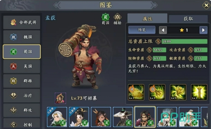 廖化虽然看似易于获取,实则是一位性价比极高的武将。必杀技虽为单体伤害,但附带的混乱效果却能让敌人陷入混乱之中,导致他们的普通攻击可能误伤友军,这种自相残杀的局面也削弱了敌方的战斗力,廖化的存在也是很适配于这个阵容的,最后孟获作为辅助型武将,他的核心技能在于能够为己方武将快速回复怒气,怒气作为释放技能的关键资源,孟获的能力极大地加速了队伍的技能循环,使得其他武将能够更频繁地施展强力技能。