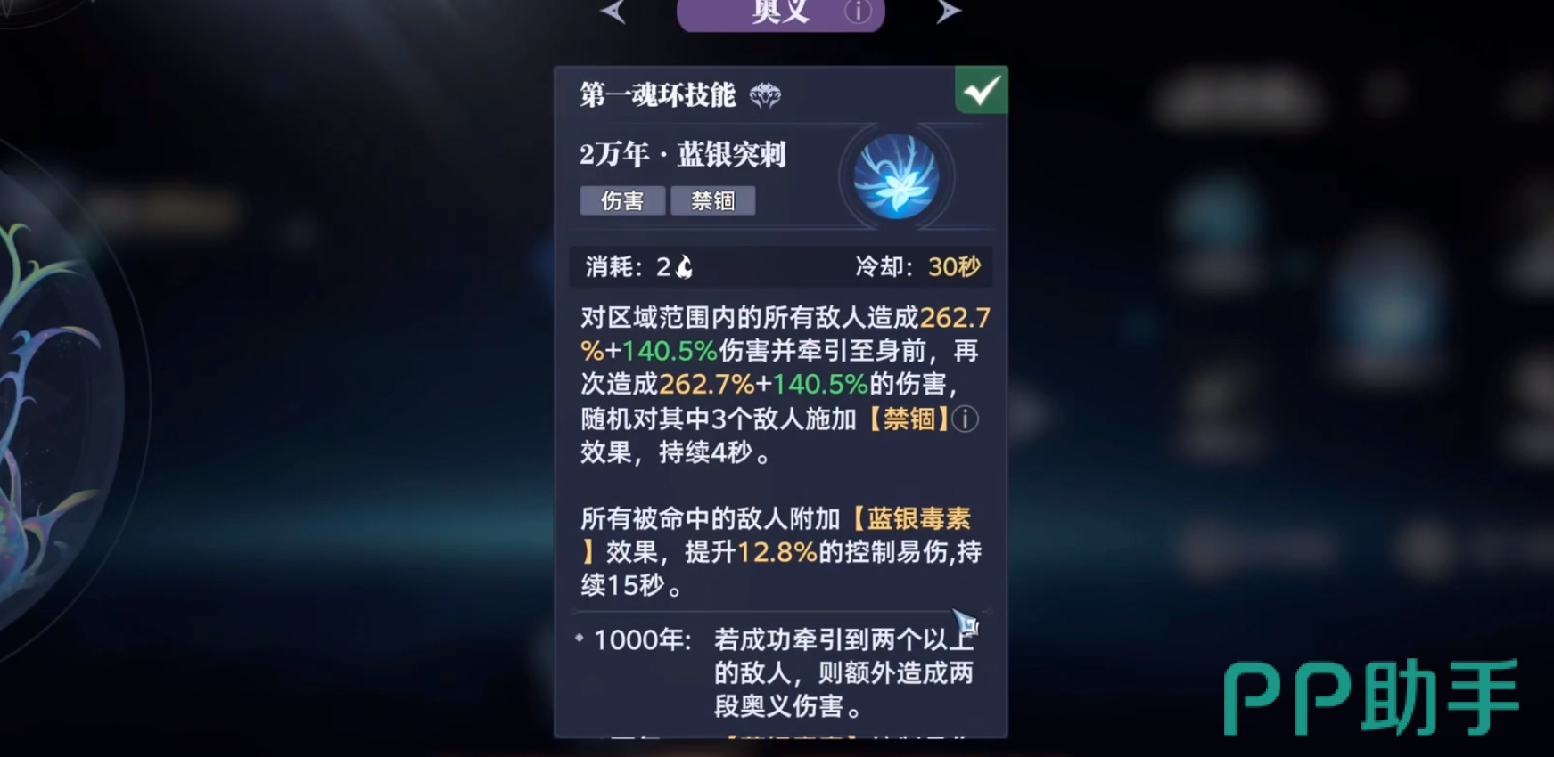 蓝银草的第三魂技在命中敌人后会形成输出值并且会附带禁锢效果,同时有概率会触发寄生效果,寄生会在一定时间后对目标进行控制。而且第三魂技有30%的概率能让其他魂技也产生寄生效果,且寄生效果会在10秒后自动触发,对攻击目标形成输出值然后再施加禁锢效果。总的来说,蓝银草是控制力非常强的武魂,而且拥有一定的聚怪和挂易伤效果,对于新手小伙伴来说是非常实用的。