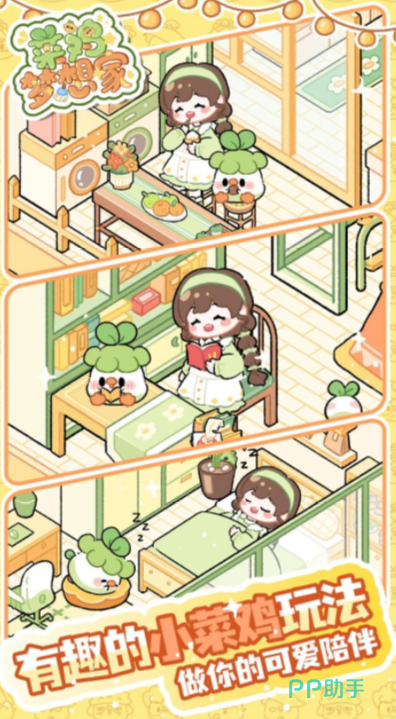 菜鸡梦想家是一个以装饰为核心玩法的经营游戏,在这个游戏里会有很多可爱的小菜鸡,玩家可以在这个卡通世界里和他们一起生存,并且经营菜鸡驿站,在这个过程中能自由的进行房间的装饰和装修,另外还可以通过收发快递赚取收益,同时还可以喝和游戏里的人物共同交流,倾听他们背后的故事,有机会找到有关于小菜鸡的身世之谜。