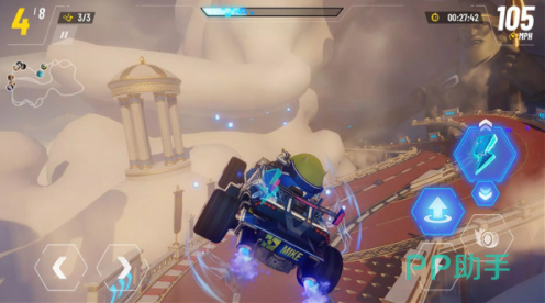 游戏支持多人联机模式,大家都可以叫上好友一起进行同屏对战,在战斗的过程中,需要有较为优秀的驾驶技巧,利用氮气推进或者是甩尾,加速超越对手,躲避各类弯道,关于每个角色还会有相应的技能,通过合理的利用这些技能可以在比赛过程中有更大的优势。