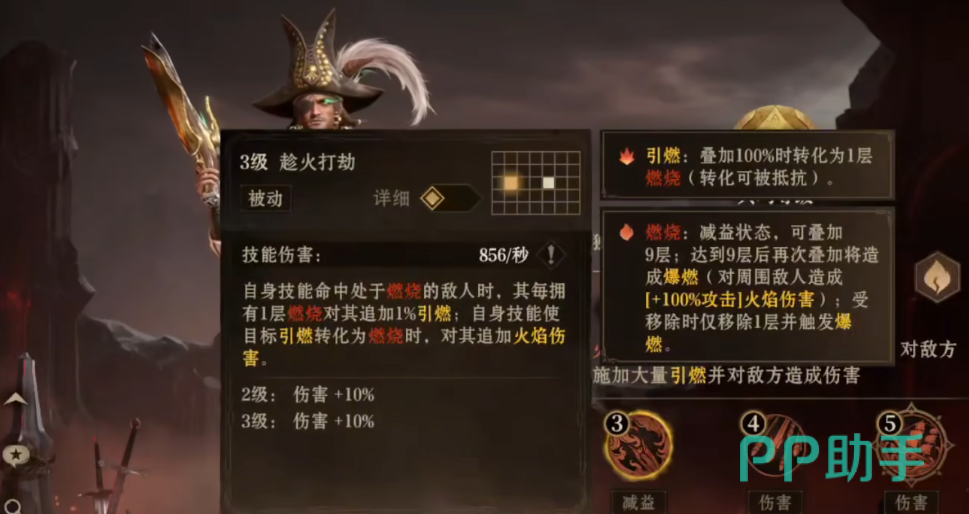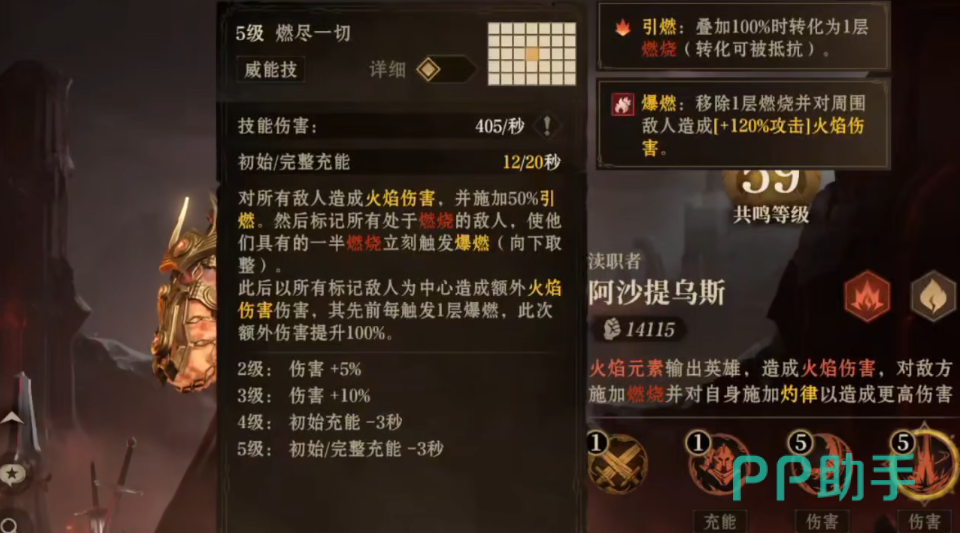在当前版本中,燃烧队的核心是角色“渎职者”。他的三技能“燃尽一切”构成了整个队伍输出机制的核心:该技能对所有敌人造成火焰伤害,并附带50%的引燃效果。更关键的是,它能够立刻引爆敌人身上已有的燃烧状态,消耗其中一半层数,转化为额外伤害,极大提升了爆发能力。