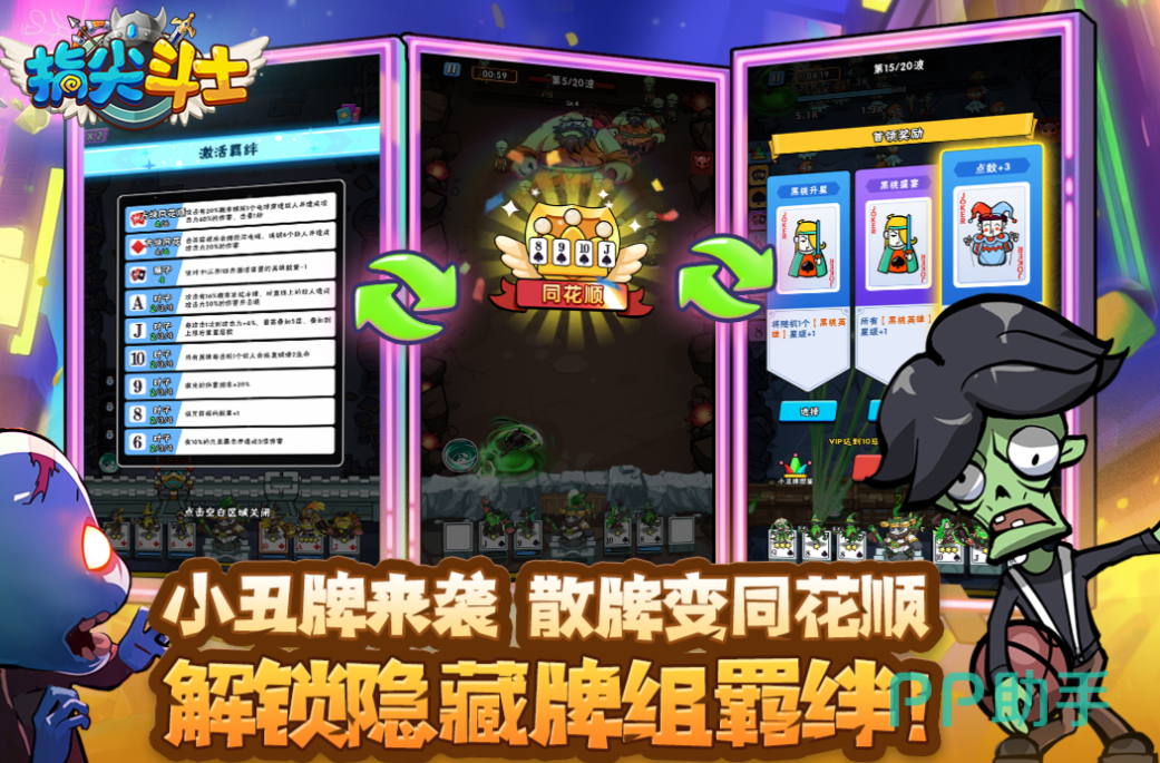 指尖斗士这款竖屏卡牌游戏结合了多元化的内容玩法,比如肉鸽模式和卡牌养成等基础设定,玩家要尝试在僵尸末日中使用卡牌参与任务,肉鸽塔防和卡牌等多样玩法结合耐玩性很强,僵尸类别多元化跟多样的卡牌相辅相成,各种隐藏的卡牌羁绊系统等待玩家解锁,轻松的指尖控制体系就能玩转所有的模式。