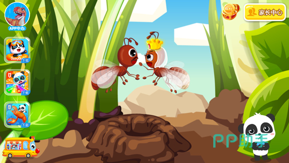这款游戏用生动的动画场景带孩子们走进微观的蚂蚁王国。在这里,孩子们无需走出家门,就能观察蚂蚁洞穴的精妙构造,了解蚂蚁从卵到成虫的生命历程,以及工蚁、兵蚁、蚁后等不同角色的分工协作。游戏通过拟人化的呈现方式,让孩子们在趣味互动中感受群体生活的智慧,逐渐领悟责任与协作的重要性。游戏中还融入了丰富的生态元素。孩子们会遇到瓢虫、蚜虫等自然邻居,有些是友善的伙伴,有些则需要蚂蚁们团结应对。