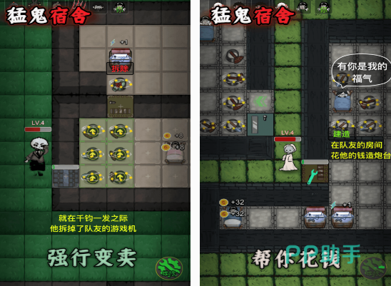 这是猛鬼会在迷宫地图宿舍当中,以抓人为主要玩法的游戏,你将扮演宿舍里面的学生,为了避免猛鬼抓到自己,需要在猛鬼不断敲击宿舍门的情况下,与其他的玩家共同克服恐惧,也可利用躲藏到比较安全的地方以后抵御猛鬼。在设置了迷宫的模式中,可看到眼花缭乱的地图,要在不同的地区建造更好的房间,用来抵御猛鬼。