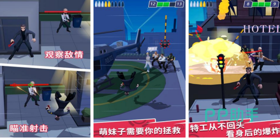 3d的高清画面以及搞笑的游戏画面,以射击为主要的题材,在这里您将要作为一名特工,在面对各种各样的难题时,必须要勇敢的应对突破重重危机,成功拯救出人质。在整个拯救的过程中将会遇到很多的敌人,而这些敌人的战斗实力都特别强悍,玩家必须要通过跳跃以及精准瞄准的方式将敌人彻底击倒。