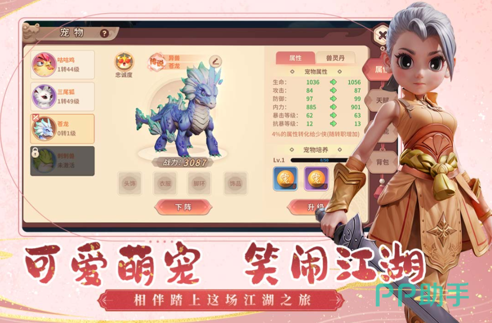 这是一款以3D画面呈现的武侠题材角色扮演手游,在游戏中,玩家会化身一位行走江湖的侠客,置身于一个满是恩怨情仇与重重挑战的武侠天地。在这里,你可以与各路高手过招,也能结识志同道合的挚友,亲身感受从籍籍无名的小人物成长为威震四方大侠的奇妙历程。游戏融入了热江特色,高度还原了其设定与经典玩法。游戏设有宠物系统,有四种宠物可供挑选,陪伴你一同冒险、并肩御敌。