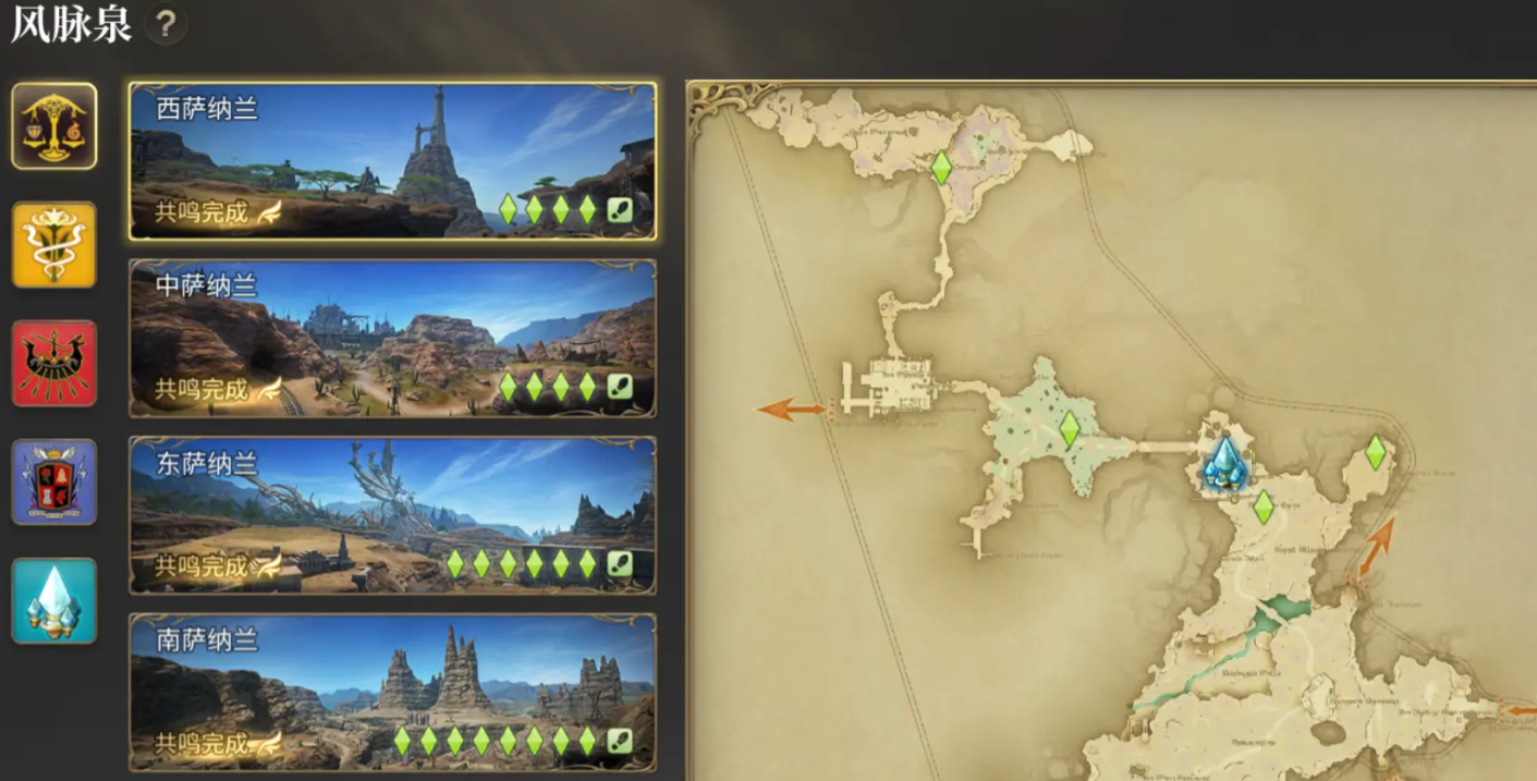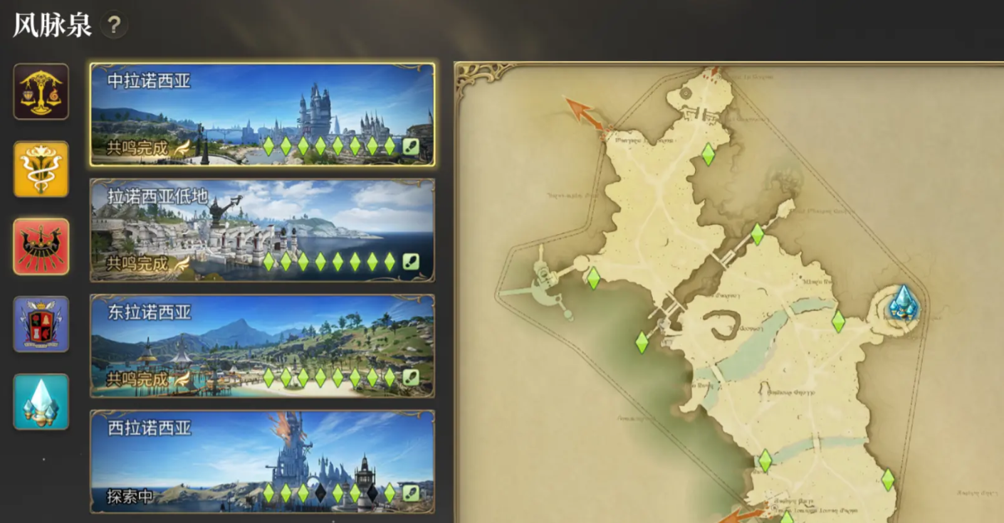 以上是最终幻想14水晶世界风脉详解,风脉可以帮助大家直接在一张地图上飞行,让后面的探索更加轻松,所以在来到一张新地图时,除了第一时间去触碰大水晶外,也不要忘记点亮散落在各处的风脉。