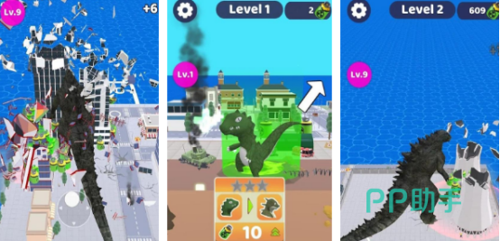 游戏中的哥斯拉与动画中的怪兽一样无恶不作,在城市当中对高楼大厦进行破坏,不过在这款游戏中,我们可以详细感受哥斯拉强大又震撼的力量,玩家化身成为怪兽,在限定的时间内拆除房子,将所在的区域快速移位平地。这样的游戏具有极高的破坏性,不过也有着无比震撼的解压玩法,丰富又复杂的关卡,等你来挑。