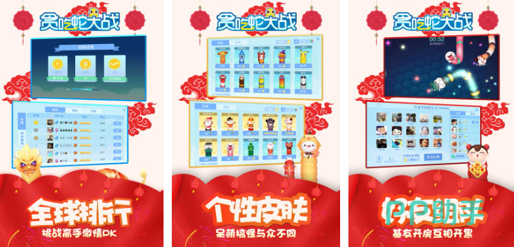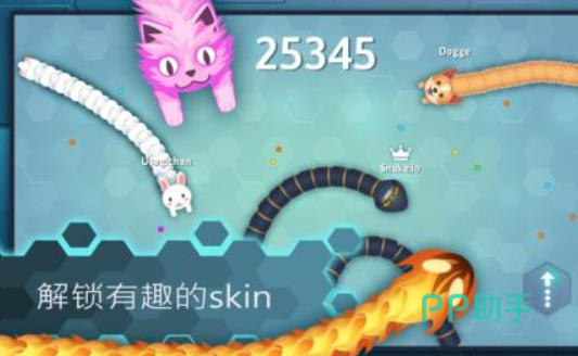 蛇蛇争霸游戏中,玩家操控蛇在充满食物与其他玩家的地图中移动,吃食物增长长度的同时,要避免自身蛇头与其他蛇身碰撞,游戏中玩家可利用蛇身的长度优势巧妙走位,封堵其他小蛇的行动路线,使其撞在自己身上,进而将对方淘汰,并获取其留下的食物资源,而且游戏内有着丰富的皮肤系统,玩家可以使用游戏内获取的金币或钻石购买各类皮肤。
