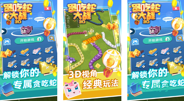 3D贪吃蛇大战游戏中,突破传统2D平面限制,构建起一个立体空间战场,玩家操控的蛇可以在其中上下左右全方位移动,但也面临着立体空间的边界限制,一旦超出范围即被淘汰,3D视角使游戏画面更具沉浸感,玩家需要时刻留意四面八方的情况,不仅要躲避其他蛇的攻击,还要精准规划移动路径。