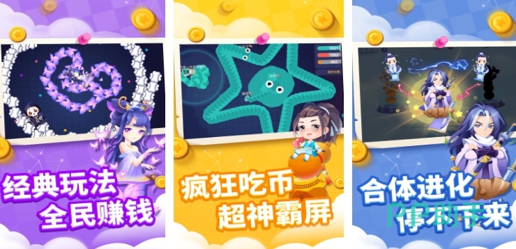 在贪吃蛇进化论游戏中,融合了放置合成与IO对战玩法,在操作上玩家滑动屏幕即可操控小蛇,通过吃掉地图上的金币实现变长,合成玩法是其一大亮点,玩家只需轻轻挪动手指,将相同的小蛇合二为一,便能解锁更为强大、样式各异的蛇,对战时长按可让小蛇加速,玩家需巧用走位,引诱对手撞上自己的蛇身,如此便能将对方辛苦收集的金币收入囊中,快速壮大自身。