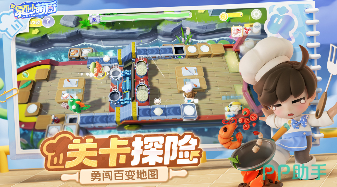暴吵萌厨不仅仅是料理挑战,更是带你穿越多个时空的奇妙之旅。游戏中有着丰富多样的关卡设计,来自不同世界的美食等着你去学习制作。传统的煎炒烹炸,还是各类创意十足的机关事件,都能让你在这里找到独属于自己的烹饪乐趣。每一份佳肴不只是食物,更是一种探索,一次冒险,甚至一场战斗——毕竟你要用这些料理来拯救这个世界。