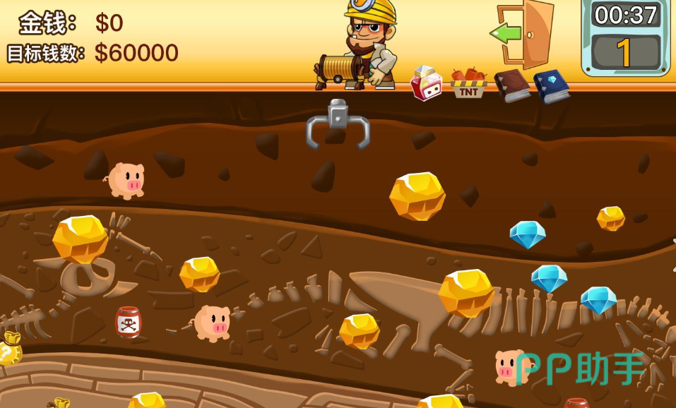 玩家需要精准计算抓钩的摆动角度和释放时机,才能成功捕获地下的金块。不同大小的金块价值各异,体积越大越值钱。每关的金矿分布都是随机生成的,增加了游戏的可玩性。画面顶部会显示倒计时和当前收益,玩家必须在限定时间内赚取足够金币才能晋级。游戏还提供多种实用道具,比如增加时间的沙漏、提升抓取力的手套等,合理使用这些道具能帮助玩家突破难关。