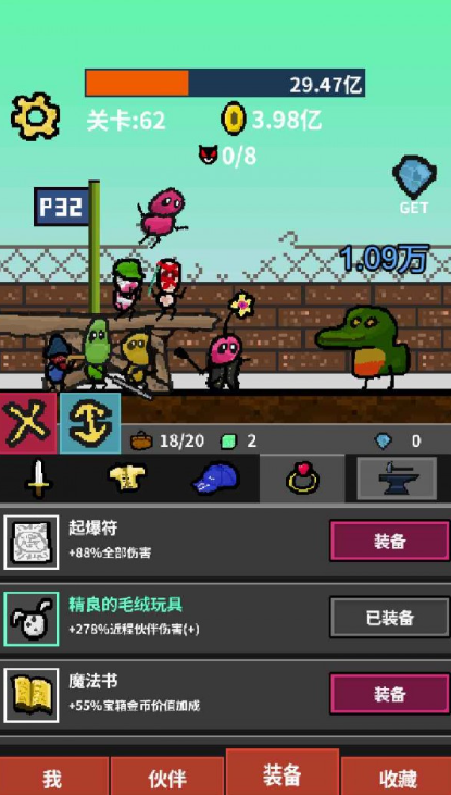 游戏里那些怪物设计得特别逗,你可能会遇到扎着冲天辫的蘑菇精,或是穿着荧光绿拖鞋的石头人,每个敌人都像从搞笑漫画里蹦出来的。战斗系统做得特别爽快,随便砍几个小怪就可能掉出会喷彩虹的魔法剑,或者能召唤小鸡的奇怪法杖。攒够钱后还能雇佣各种奇葩队友,比如总爱摆pose的弓箭手,或者打架前非要念段rap的法师。操作特别顺手,划划屏幕就能看你的角色把怪物揍得满地找牙,那种打击感让人玩得停不下来。