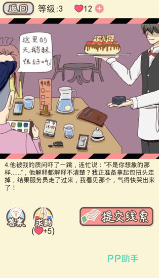 这是一款融合侦探解谜与恋爱模拟的休闲游戏。玩家扮演侦探角色,通过观察伴侣的日常细节、分析对话与场景中的蛛丝马迹,逐步揭开隐藏在甜蜜表象下的秘密。游戏采用图文结合的叙事模式,每个章节都围绕不同情侣的出轨情境展开,玩家需收集显性与隐性线索,利用放大镜、录音等道具辅助推理,最终通过对话与行动影响结局走向。游戏不仅考验观察力,更通过剧情分支传递情感经营智慧,适合喜欢解谜与恋爱题材的玩家体验。