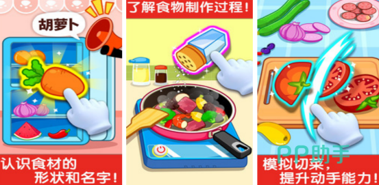 很多小朋友每当看到父母在厨房当中忙前忙后,怎么很想参与其中探索一番,这款游戏满足小朋友的所有小效率需求,也能够满足他们的好奇心,厨房当中有较多特色食材,比如香肠,胡萝卜西瓜等等,有蔬菜也有水果,将不同食材搭配在一起,能够制作出不一样的特色美食,这样的高人气息能够轻松提升小朋友的动手能力,也能够让他们爱上美食。