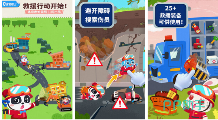 这款地震主题的安全知识普及游戏很受孩子喜欢,多样互动任务会让孩子身临地震现场,卡通可爱的美术跟高代入性的游戏机制也是亮点,可爱的小动物NPC会成为消防员陪你一路冒险,生动卡通的动态效果演绎增添了观赏性,针对孩子们设定的各类益智解谜玩法也比较好玩,这款能够教会孩子各种地震安全的神作值得下载。