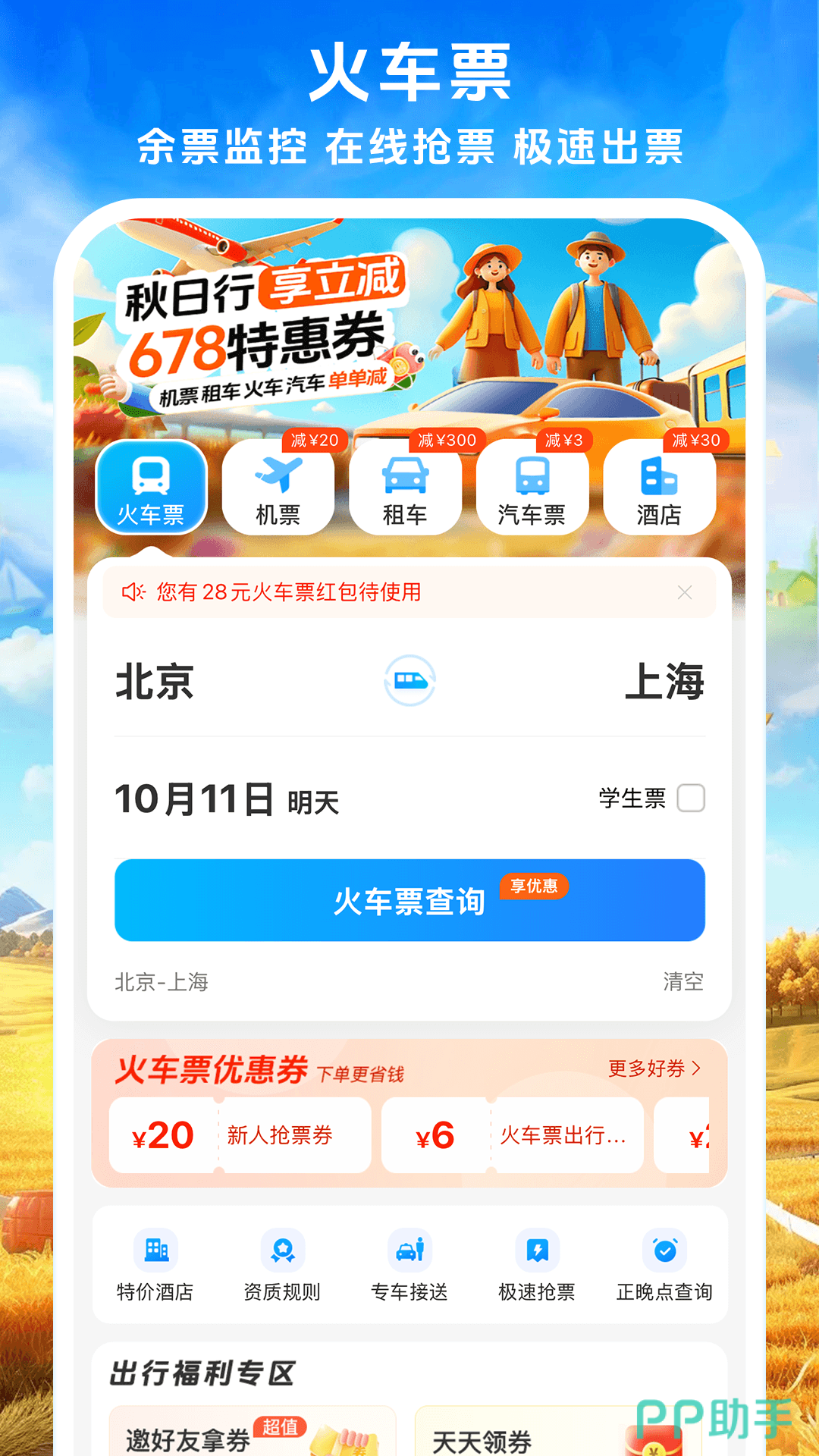 智行火车票的火车票价格十分优惠,它支持全网比价,能迅速整合各大平台的车票价格信息,帮用户挑选出性价比最高的车次,让你不再为多花钱而烦恼。同时,软件还会不定期推出丰富多样的优惠活动,像新用户注册后的首单立减、邀请好友助力获取额外优惠,还有针对会员的专属折扣等,可以实实在在地帮大家节省购票成本。抢票功能也十分强大,能实时、精准地监控车票的发售和退票信息,一旦有余票放出,便迅速提交购票请求 ,大大提高了抢票成功率。不仅如此,软件还提供多种抢票策略供用户选择,比如设置多个抢票时间段、选择不同车次和座位类型等,满足大家的多样化需求。