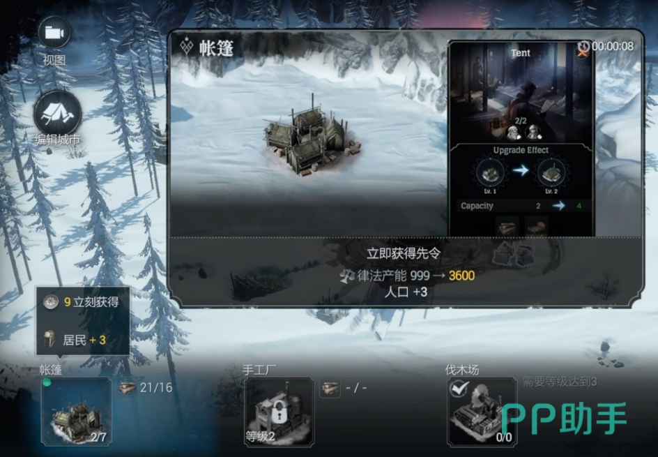 游戏的时代背景是寒潮来袭,幸存者们不得不集结所有的物资来建造最后一个城市,在玩家进入游戏中首要就是解决温暖情况,所以说通关相关的任务获得一些道具后就能开始建立能量塔,这是或许一切产业建造的基础。