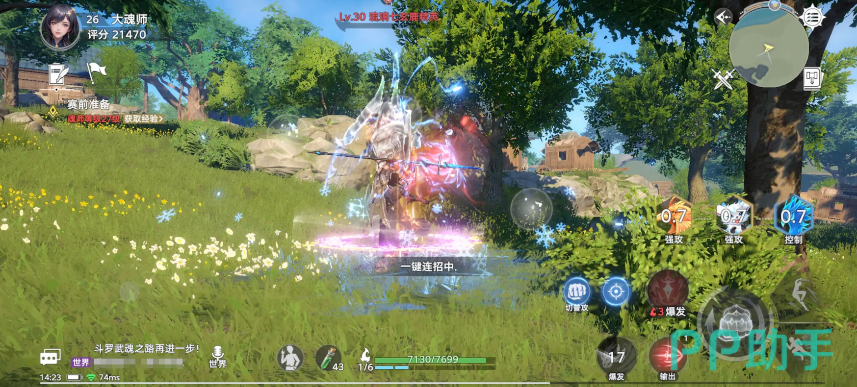 然后还采用无锁定即时战斗模式,玩家可自由闪避、浮空连招,体验高精度打击感。核心玩法是多武魂切换,如强攻系(邪眸白虎)、控制系(蓝银草)、辅助系(九宝琉璃塔),战斗中需灵活搭配魂技,形成连招压制敌人。25级后解锁一键连招功能,简化操作流程。