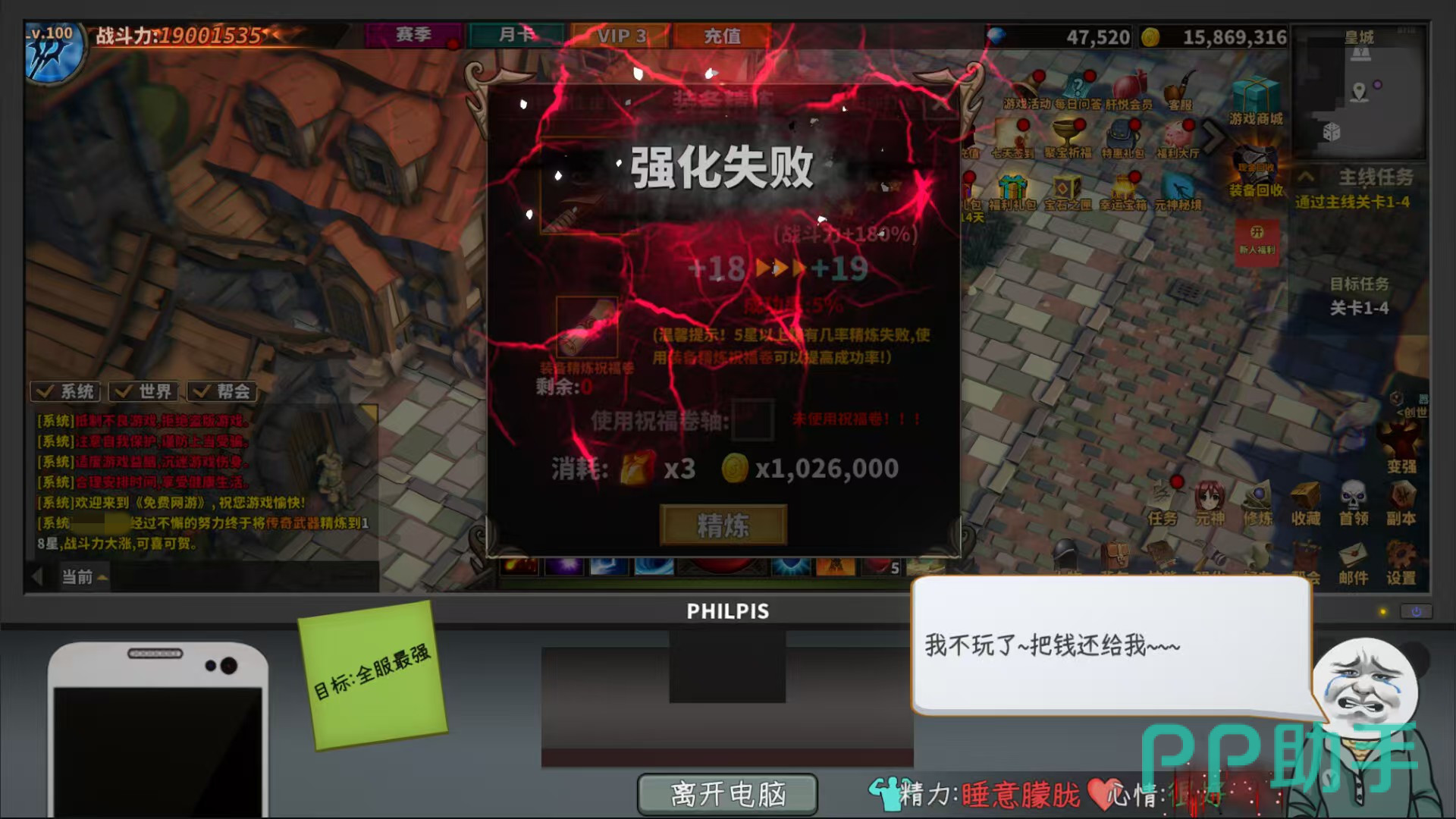 游戏中最有乐趣的地方,就是将很多中国式网游的经典设定,都完美的复刻了出来。除了左下角的世界聊天框,顶部的全幅滚动通知等大家所熟悉的操作之外。还加入了做任务领红包,首充大礼包,网吧福利,每日充值,七天签到游戏活动等,这些大家耳熟能详的设计,在这里都复刻了出来。再加上一键寻路,一键完成任务等常规操作,采用这样套娃式的模式,轻松幽默的方式,来展现目前很多国服网游的特点。