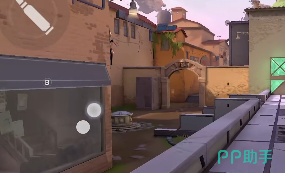 接下来我们将视角给转移到左侧门口,这里可以看到有一个炮筒,这个炮筒也是一个适合使用闪光的地区。这个位置是A大门这里进行反清闪最好的区域。唯一的缺点就是这个位置确实不好扔进去,玩家们需要多加练习才行。