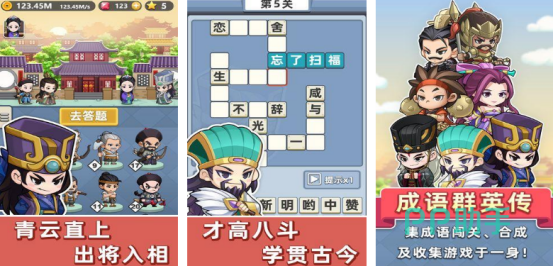 这款游戏将闯关以及合成等多种玩法结合起来,清新又简约的画面给玩家带来了极强的治愈性,这里还设计了丰富的关卡内容。您可以穿越历史古代和更多的优秀英雄豪杰,共同沉浸在知识的海洋中。每个人物角色都利用q版的画风进行展现,比如在成语接龙这种玩法当中,您要正确的填词。