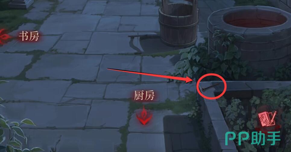 第二枚钉子位于后院水井的边上,需完成以下操作1.厨房灶台取得麻绳(拖动至水井触发交互)、2.寝房床底拾取木桶(拖动至井口与麻绳组合),这样就能拿到钉子,材料备齐后拖动至宅门处触发孙策剧情,选择对话选项“吾与伯符共守此门”可提升好感度,误选将导致重复收集竹竿。成功钉门后将解锁“固若金汤”成就,若在钉门前先完成陶人收集(厨房水缸、寝室地毯),可触发孙策特殊台词“广陵王亦通匠术乎?”而且注意钉门后宅门场景将关闭,未拾取的道具需通过“回溯镜”功能重置当日进度。
