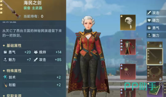 可以用海民之剑举例说明,玩家在挑选划船相应的技能时,马上就能看到这一个装备。获取这一个武器其实很简单,只需要通过地图隐藏发现物马上就能够获取,在获取时同样也需要满足一些要求,例如满足探索8,还有考古10等等。