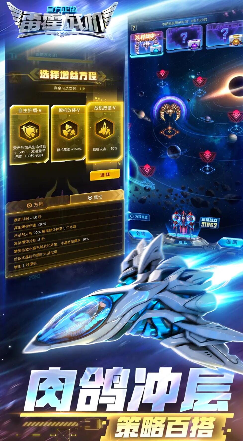 除了开飞机还得选驾驶员,金牛座加暴击,巨蟹座开护盾,氪金大佬能抽到天龙座的免死技能。四个驾驶员能组出几十种BUFF,无尽模式想冲榜必须研究搭配。可以说新作中非常着重强调了肉鸽玩法的特性,这杨不仅增加了游戏可玩深度,还能带给玩家十足的重玩价值。