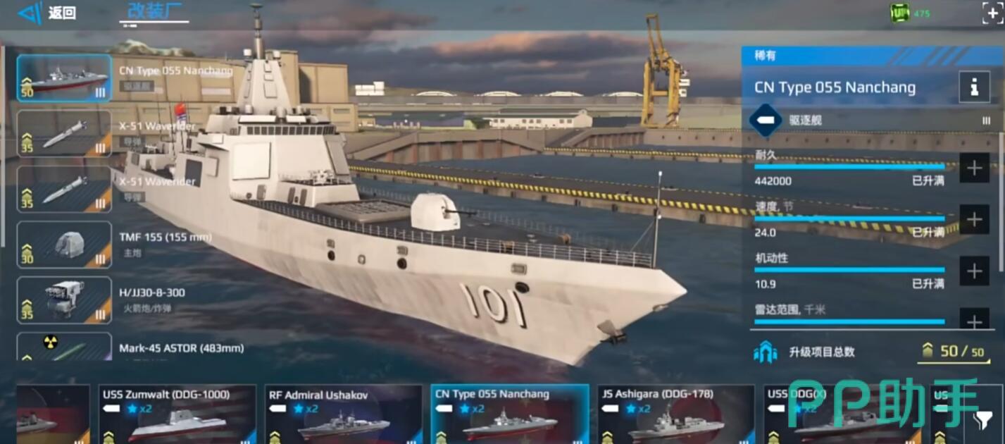 055型驱逐舰(游戏内通常称为“南昌舰”)是一艘兼具火力、机动性和战术价值的顶级战舰,深受玩家青睐。作为中国海军现役最强驱逐舰的虚拟版本,游戏中的055还原了现实中的部分性能特点,可携带3座导弹发射器、1座主炮、3具火箭炮、6座防空炮等等,055的战术灵活性极高,无论是PVE推图还是PVP竞技都能发挥稳定作用。