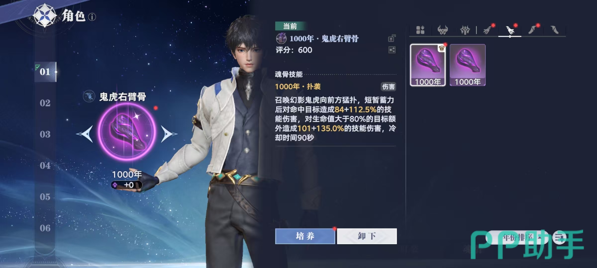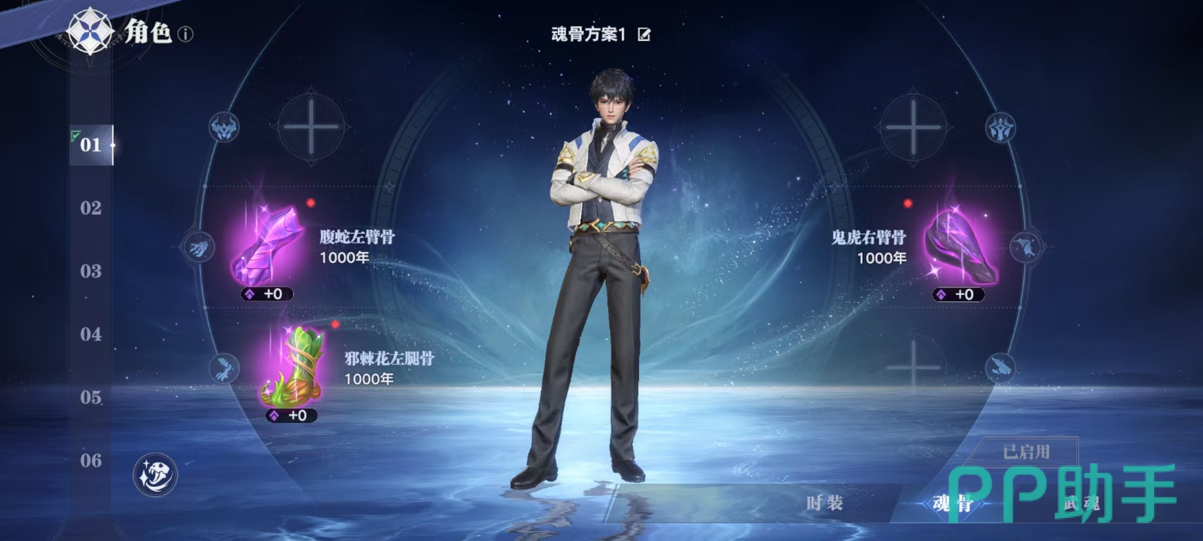 当大家不断往前推进主线完成相应的任务之后,就可以解锁魂骨玩法。解锁之后,点击主页面中的角色选项,在角色中就可以找到当前的魂骨设定。魂骨是主角可以装备的战力重要保障,一共有6个不同的部位魂骨,分别是头部,躯干,左臂,右臂,左腿和右腿。大家在装备魂骨后,可以获得对应的技能,其中头骨和左右臂骨中获取到的是主动技能,其他部位获取到的都是被动机能。