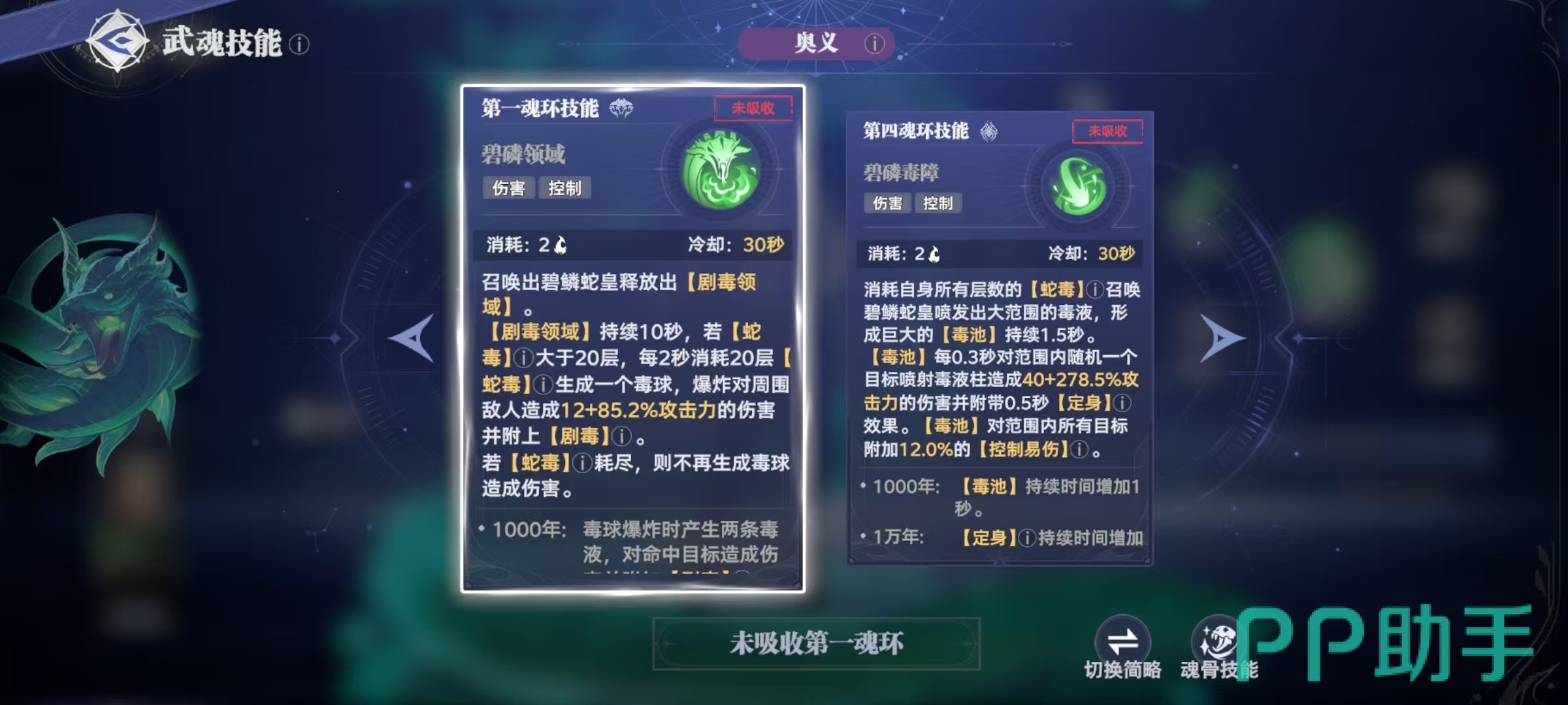 最关键的一点是,目前游戏最流行的流派中,都没有出现碧磷蛇皇的身影,它的中毒效果以及控制,很难融入目前的主流流派中,所以并不是非常推荐大家养成的一个角色。但是在前期阶段还没有形成流派时,这个武魂可以先使用一段时间。