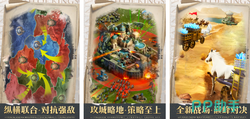 策略丰富打法自由的军事对抗类手游,在架空时代中玩家将会作为众多国王中的一员,选择喜欢的势力来发展壮大,击败对手称霸世界。游戏的策略性较强,玩家可以与其他人结盟组队共同攻打城邦,或是发起外交攻势来获得优势。本作融合盟战、经营、探索、剧情以及实时战斗等多种玩法,策略挑战体验非常丰富。