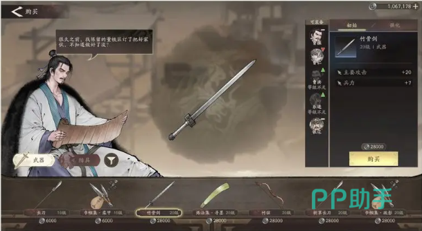 首先要去往兖州,到了兖州大营之后,就可以在右下角的“培养”按钮中找到“装备获得”;可以在这里购买,锻造,强化装备等的操作。在装备商店里面,初始只出售10级的装备,将工坊进行升级之后就会出售更加高级的装备,购买的装备是可以直接穿到主将身上。