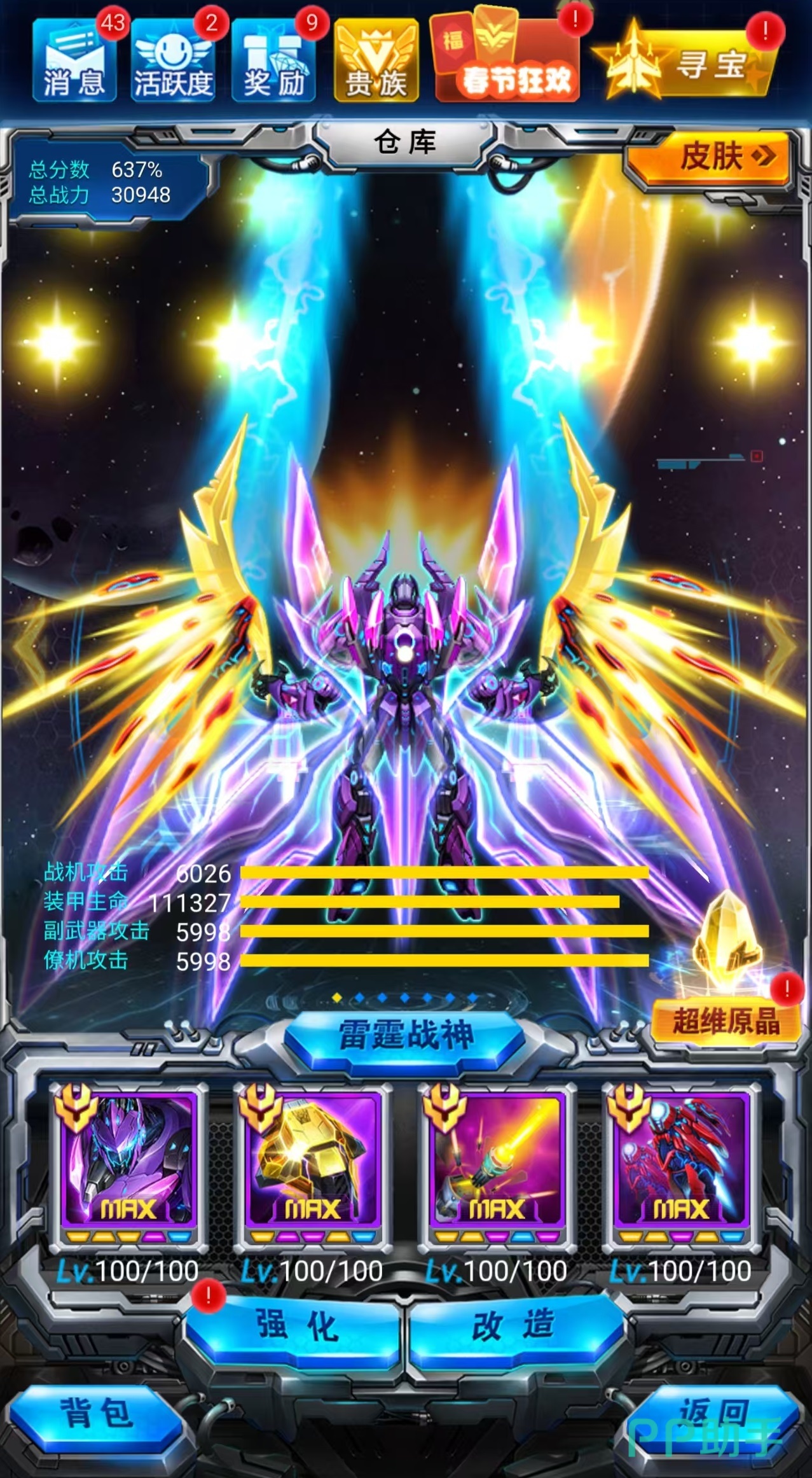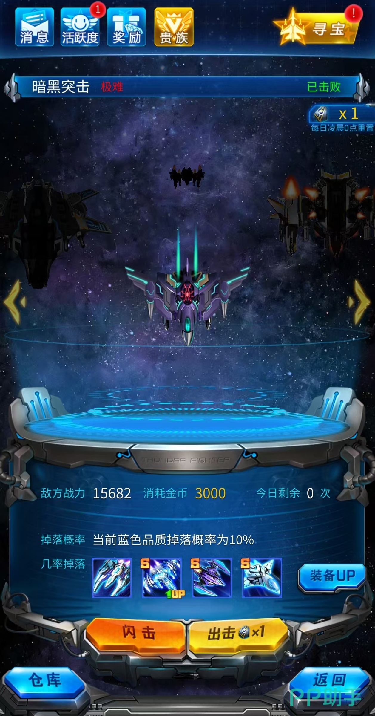 这款游戏在重新制作之后,画面和特效方面的表现更加出色,采用了粒子特效和全景3d建模方式打造,不仅战机外观炫酷,弹幕设计方面更是极具视觉冲击力。当出现满屏火力的时候,可以让玩家感受到紧张刺激的战斗氛围。在玩法方面保留了传统射击的精髓设定,融入了更多肉鸽元素,例如巡航远征模式中就充满着不确定性,还有能进行实时匹配的pk模式,百人吃鸡混战模式等,大大增加了游戏的趣味性和竞技性。